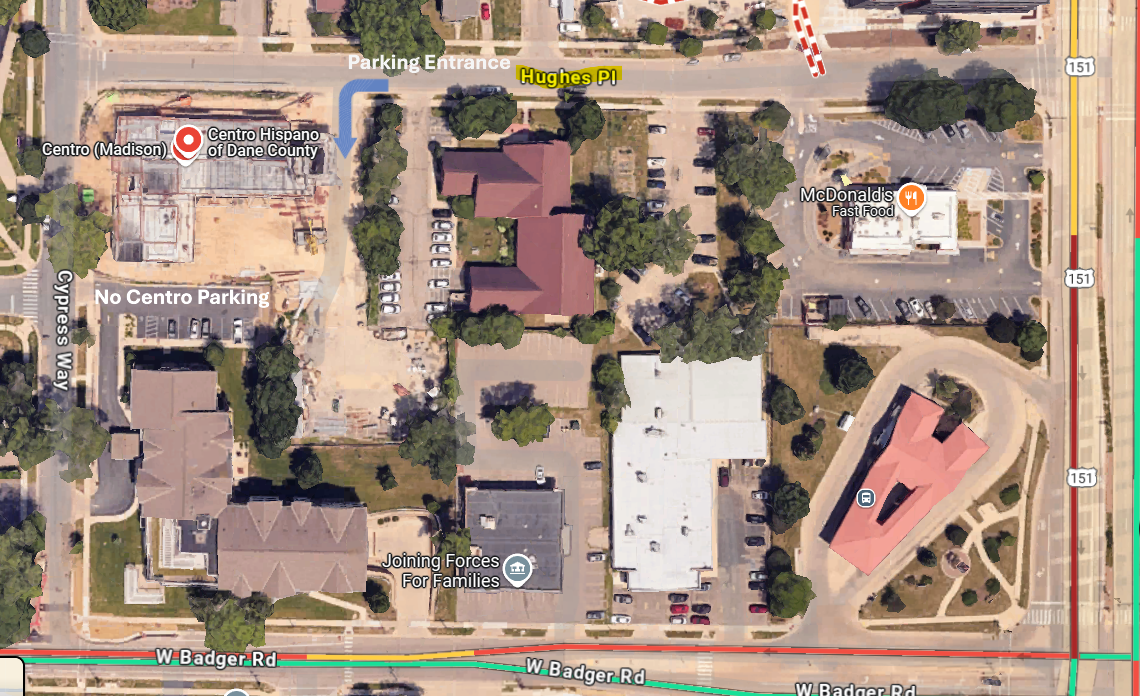 Parking will be availble in the lot off Hughes Pl. (see map here). Please note that the parking adjacent to the building off Cypress Way is not affiliated with Centro, so parking there is not allowed. Metro Transit and bicycle transportation are options as well.